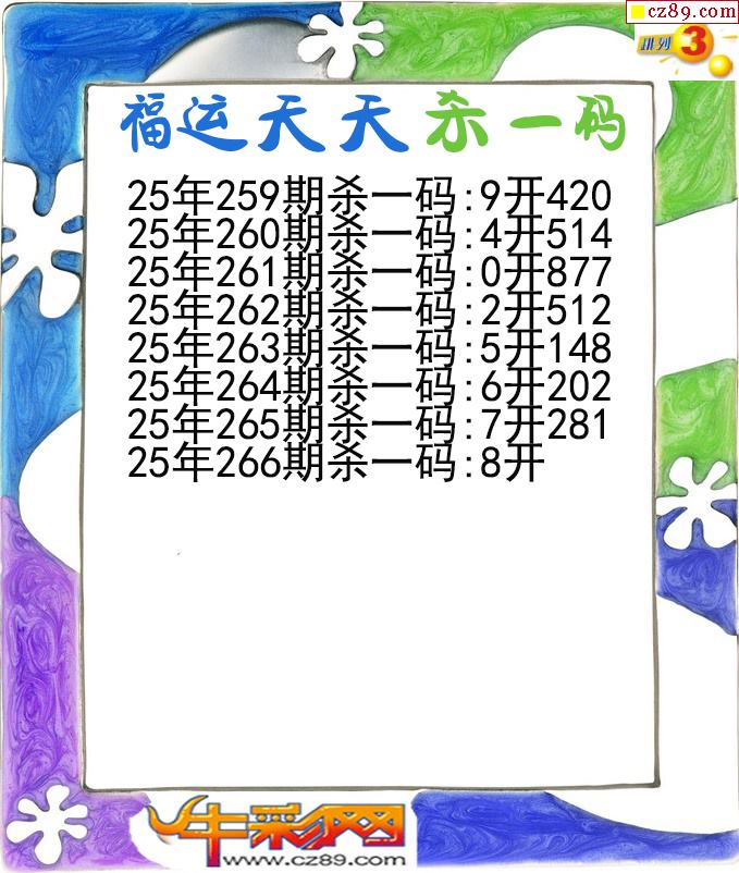 • 七夜杀码263期体彩P3图谜(原创)10-07