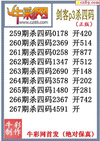 剑客杀码267期体彩P3图谜(原创)