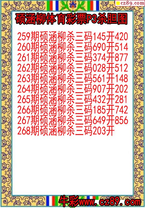 25年268期硕涵柳体育彩票P3杀胆图