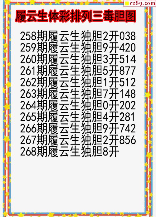 25年268期履云生体彩排列三毒胆图