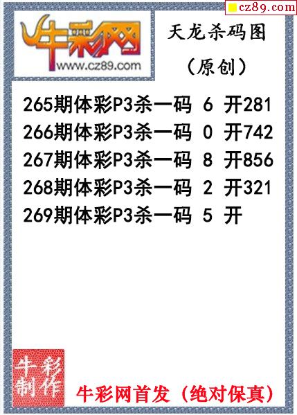 • 天龙杀码269期体彩P3图谜(原创)10-10
