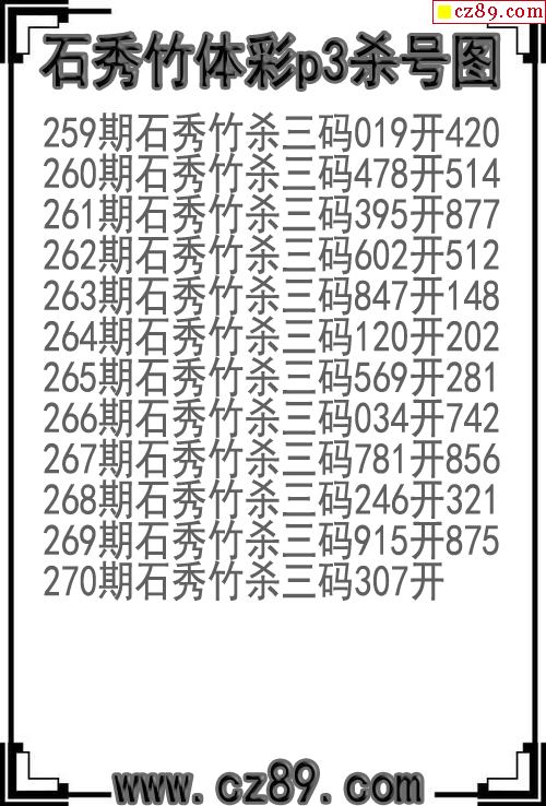 25年270期石秀竹体彩p3杀号图