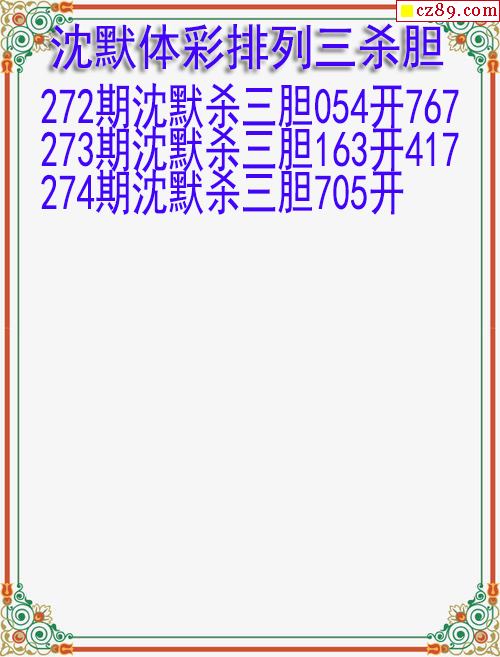 25年274期沈默体彩排列三杀胆图迷