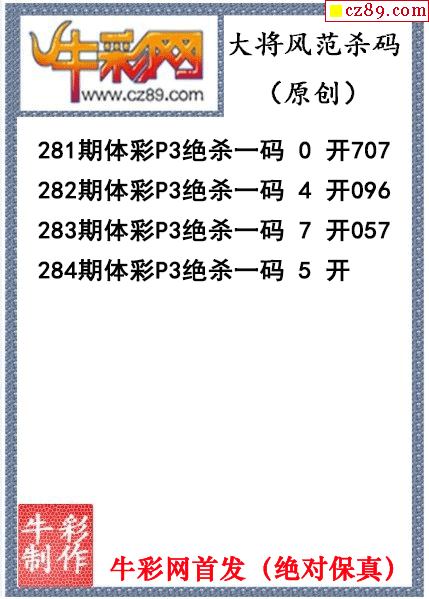 大将风范杀码284期体彩p3图谜(原创)