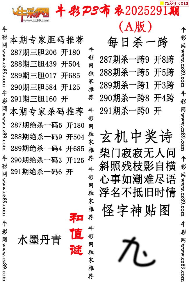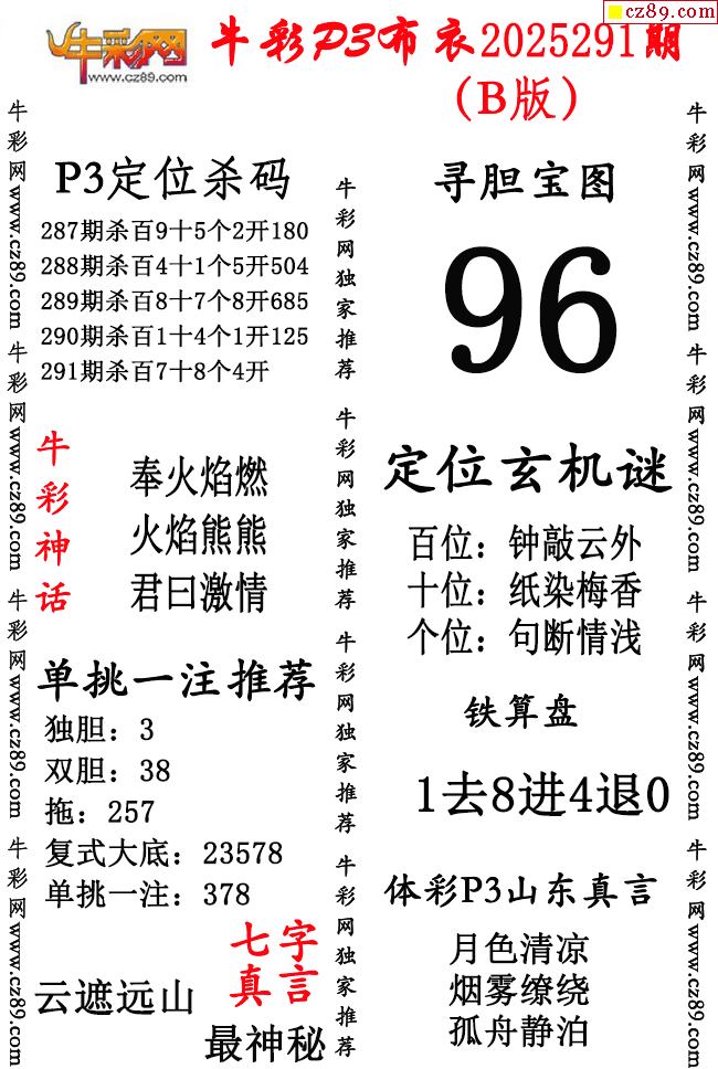牛彩P3布衣25年291期AB版图谜(精华版)