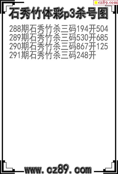 25年291期石秀竹体彩p3杀号图