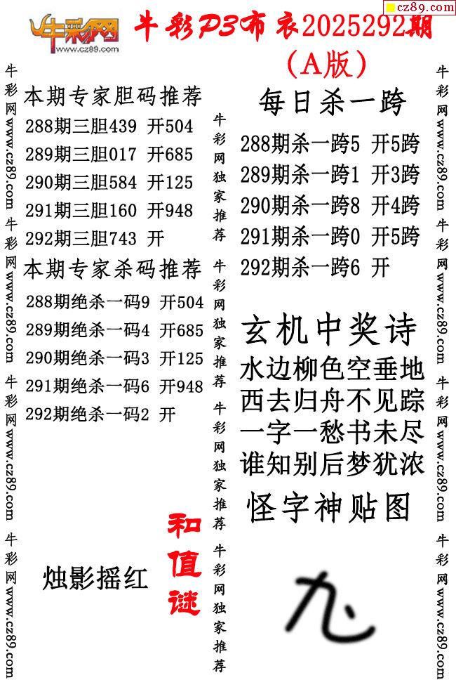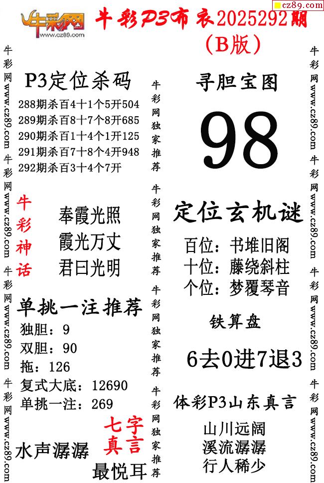 牛彩P3布衣25年292期AB版图谜(精华版)