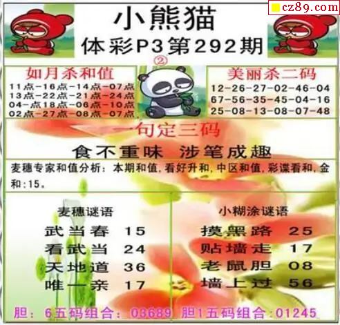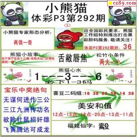 小熊猫2025292期体彩P3图谜