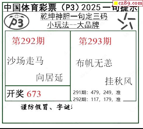 乾坤一句定三码25年293期P3图谜