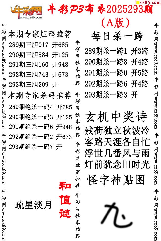 牛彩P3布衣25年293期AB版图谜(精华版)